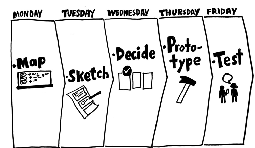 Дизайн-спринт складається з п’яти етапів, кожен з яких займає один день
