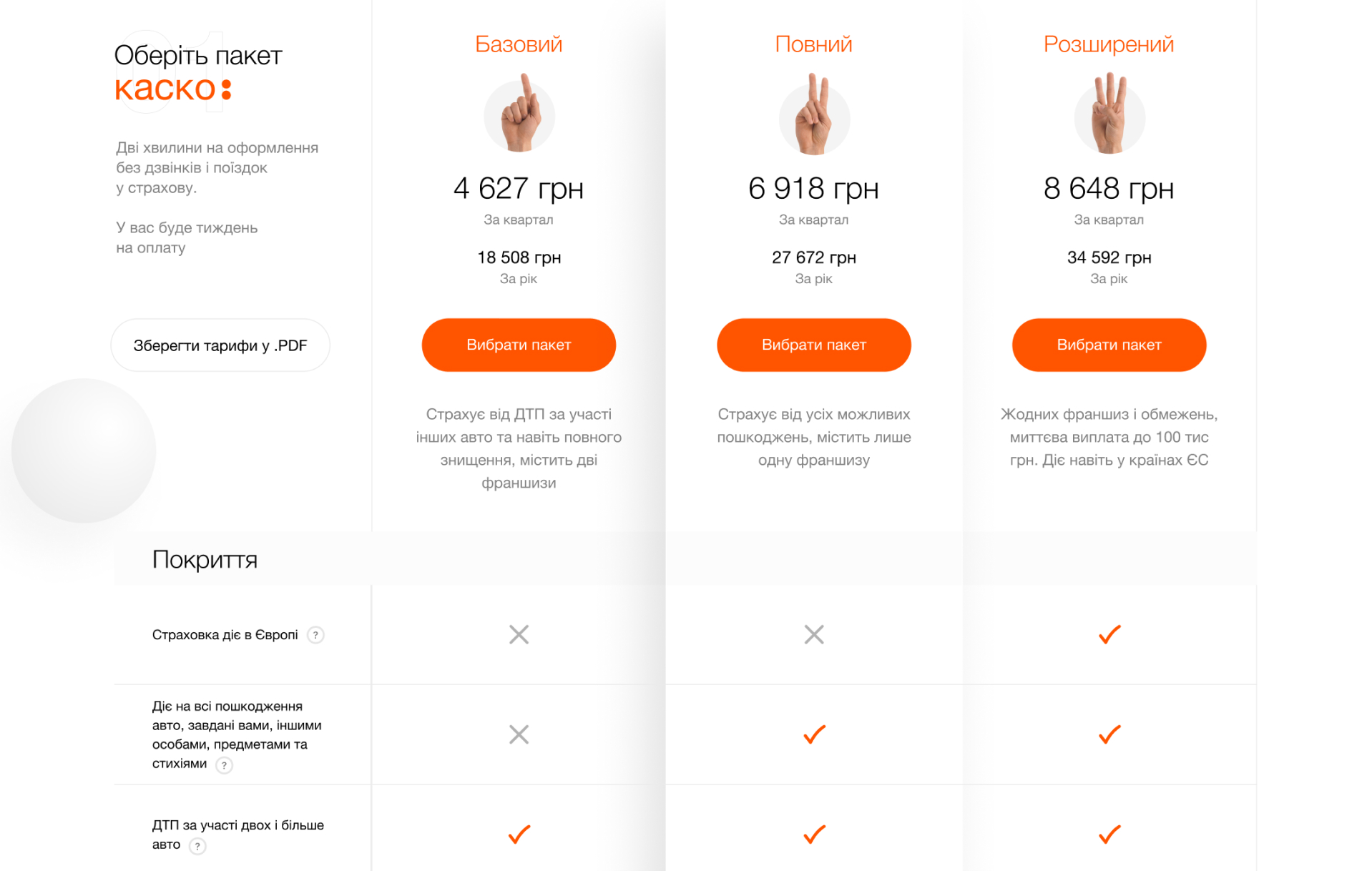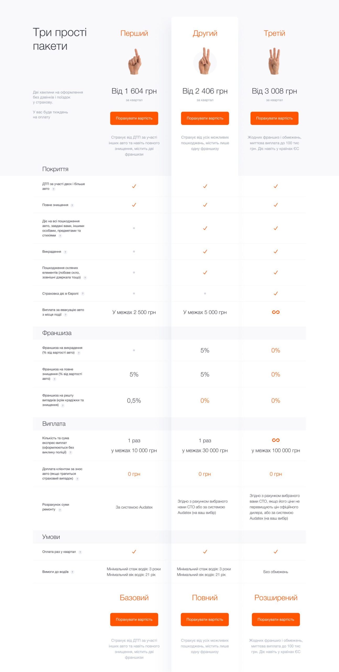 Customers are used to such comparisons in online banking. We’ve honestly indicated the insurance coverage, exceptions, deductibles, and important points. Not a single item is hidden in the footnotes.
