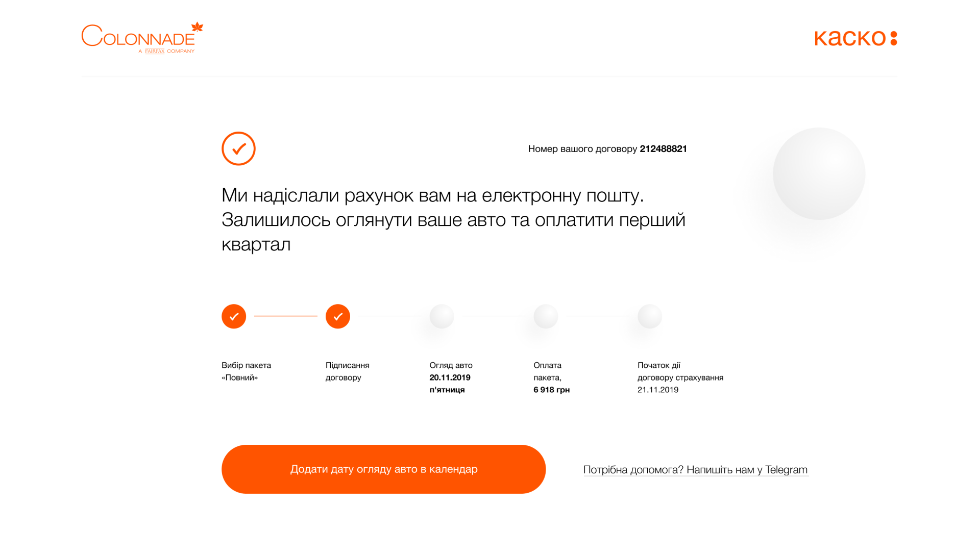 Users are used to this while ordering Motor third-party liability insurance, so we’ve created a similar experience for this new product:
